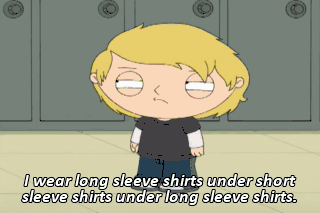 I wear long sleeve shirts under short sleeve shirts under long sleeve shirts. Wow! Oh, my God! Oh, my God, you're so cool! You're so awesome! You've checkmated my teenage cynicism!