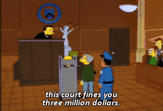 this court fines you three million dollars. Smithers, my wallet's in my right front pocket. Oh, and, uh, I'll take that statue of justice too. Sold!