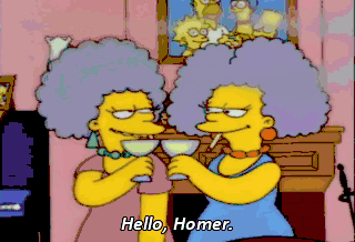 Hello, Homer. Marge, we had a deal. Your sisters don't come here after 6:00, and I stop eating your lipstick. This is a special occasion. Patty and Selma just got promoted at the D.M.V.