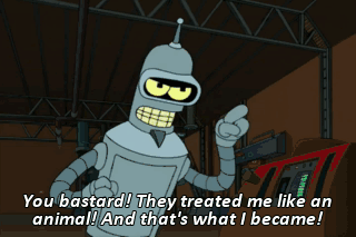 You bastard! They treated me like an animal! And that's what I became! Nah, you're all right. Good to see ya, buddy. And here's another scab what also works here. Angleene.