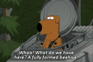Whoa! What do we have here? A fully formed beehive! Must have taken months to build that guy. Well, guess what? (EXCLAIMS)