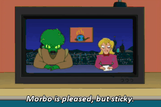 Morbo is pleased, but sticky. The scorching heat has melted the polar ice caps, causing floods of biblical proportion.