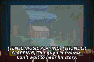 (TENSE MUSIC PLAYING) (THUNDER CLAPPING) This guy's in trouble. Can't wait to hear his story. Come on!
