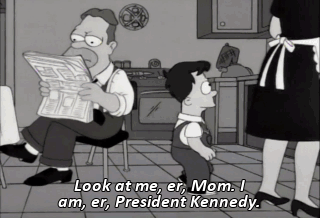 Look at me, er, Mom. I am, er, President Kennedy. Oh, Abe. Maybe our Homer could grow up to be president some day.