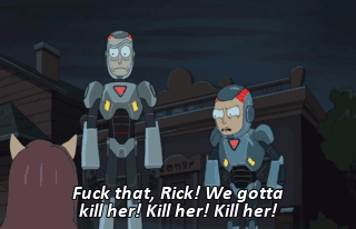Fuck that, Rick! We gotta kill her! Kill her! Kill her! Whoa! Geez, Marty, purge it down a little.