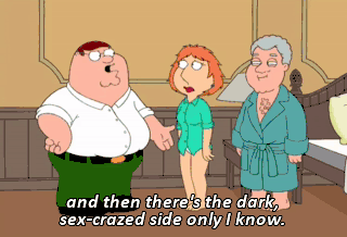 and then there's the dark, sex-crazed side only I know. I'm so sorry, Peter. Lois, I think maybe it's better if I stay at Quagmire's for a while. I understand.