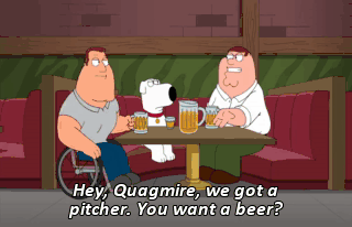 Hey, Quagmire, we got a pitcher. You want a beer?