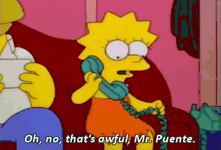 Oh, no, that's awful, Mr. Puente. What? Oh, he owns the nuclear power plant. Yeah, I'd like to settle his hash too. Dad, how can you work for a man like Mr. Burns?