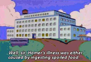Well, sir, Homer's illness was either caused by ingesting spoiled food...