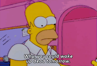 Why, you could wake up dead tomorrow.