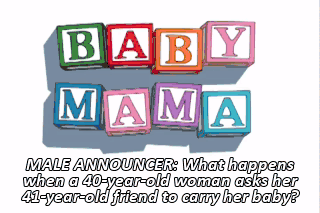 MALE ANNOUNCER: What happens when a 40-year-old woman asks her 41-year-old friend to carry her baby?