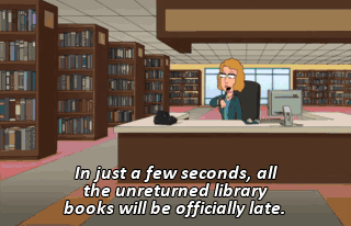 In just a few seconds, all the unreturned library books will be officially late. The wieners was already drawed in the books when I got 'em. "Libra. A strange man will drop into your life." Hmm.
