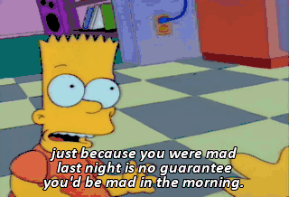 just because you were mad last night is no guarantee you'd be mad in the morning. I'll show you mad in the morning ! Gah ! Homer, you encouraged him ! You should be strangling yourself ! She's right !