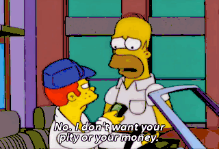No. I don't want your pity or your money.