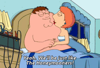 Yeah. We'll be just like The Honeymooners! One of these days, Alice. One of these days... Yeah, yeah. I know, Ralph. Right to the moon. Oh.