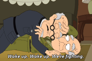 Wake up. Wake up. We're fighting. Where... Where am I? It's okay. We're fighting. Wake up.