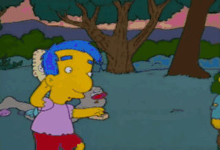 get out of your hair. Not so fast, two eyes! Come on. Let's slice him open and get our food back. Wait! We're not savages. We live in a society of law. Milhouse has the right to a fair trial. Society blows.
