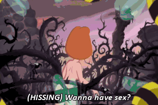 (HISSING) Wanna have sex? (GASPS) (INDISTINCT HUMMING) Groggety! (SHRIEKS)