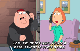 Lois, I'm at the gym. I hate it here. I want to come home.