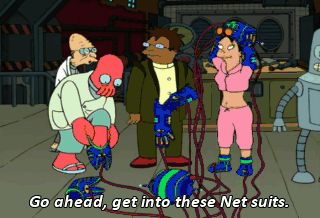 Go ahead, get into these Net suits. I designed and tested them myself. They smell like burning rhesus monkey. Really? I guess when you're around it all day you stop noticing. Off you go.