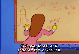 D R over three, or R squared D R, or R D R R. Har-dee-har-har. Get it ? Oh, yeah.