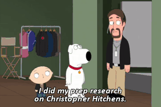 I did my prep research on Christopher Hitchens. I am so sorry. I am done with you. Do you hear me? Done! Get out of here now! Brian, please. You're fired!