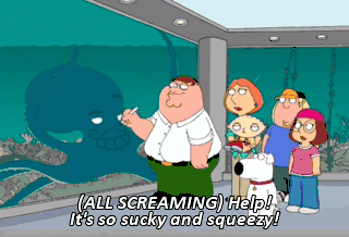 (ALL SCREAMING) Help! It's so sucky and squeezy!
