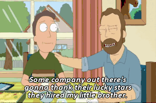 Some company out there's gonna thank their lucky stars they hired my little brother. Who the fuck are you? My goofy brother, Steve.
