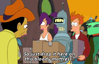 So just drop it here on this bloody mattress? (SOBBING) Thanks, Tissue Ghost. DR. ZOIDBERG: You can't afford tissue anymore.