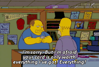I'm sorry. But I'm afraid your card is only worth everything I've got! Everything!