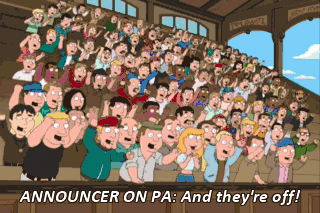 ANNOUNCER ON PA: And they're off!