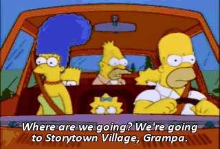 Where are we going? We're going to Storytown Village, Grampa.