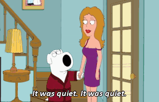 It was quiet. It was quiet. Wow, Brian, you've had quite a string of female guests spend the night lately. Yeah, whatever you're doing, it's working. You should see the way I have to pick up chicks. Hi. (GIGGLING)