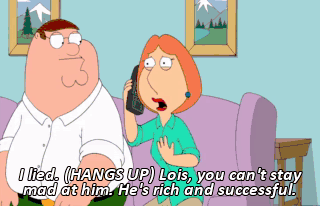 I lied. (HANGS UP) Lois, you can't stay mad at him. He's rich and successful.