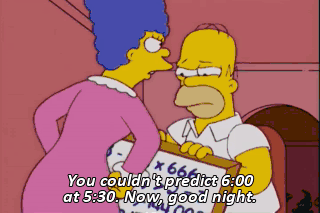 You couldn't predict 6:00 at 5:30. Now, good night. (ALL SLAM DOORS) (SLAMS DOOR)