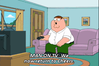 MAN ON TV: We now return to Cheers.
