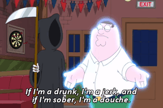 If I'm a drunk, I'm a jerk, and if I'm sober, I'm a douche.