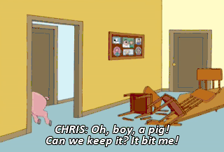 CHRIS: Oh, boy, a pig! Can we keep it? It bit me!