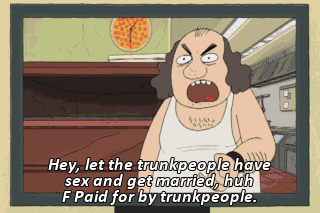 Hey, let the trunkpeople have sex and get married, huh F Paid for by trunkpeople. Oh, llove me strawberry sniggles.