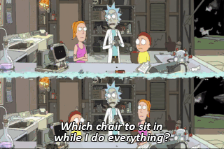 Which chair to sit in while I do everything? Come on, spit it out! Well, you don't exactly make it easy, Rick.