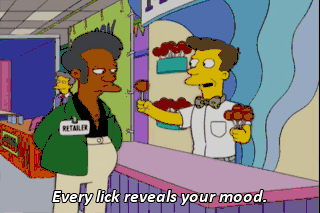 Every lick reveals your mood. It works. If blue is the color for unimpressed. T-shirts! Come order my homemade T-shirts! My mom thinks they're good! Y'all ready for this? (UPBEAT MUSIC PLAYING)