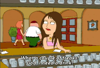 What a couple of freaks! God, I need a drink! Waiter! Martini and a roofie colada!