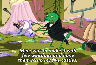 Mine was to make it with five weirdoes and have them scrub my five castles.