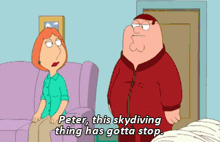 Peter, this skydiving thing has gotta stop.