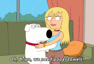 Oh, Brian, we need paper towels! Oh! Oh, it's going under the fridge! Oh! Just use a dish towel! There aren't any, Brian! You need to come in here! Oh! We are gonna have ants!