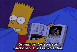 Grammar Rodeo head buckaroo, the French table. Ooh-la-la! "Teacher's pet"?
