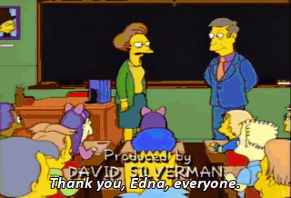 Thank you, Edna, everyone. Now, class, I wonder who among you can tell me what this is? Oh! Not the box factory again, Seymour. This may well prove fascinating. I know. I'll just do like Lisa...