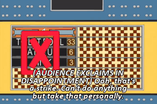 (AUDIENCE EXCLAIMS IN DISAPPOINTMENT) Ooh, that's a strike. Can't do anything but take that personally.