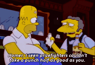 Homer, I seen prizefighters couldn't take a punch half as good as you.