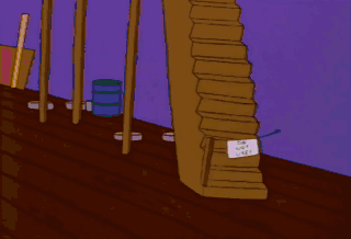 Wacky shack! Better be careful, Bart. Look at those warning signs. Solve your problem, Milhouse? Yep.